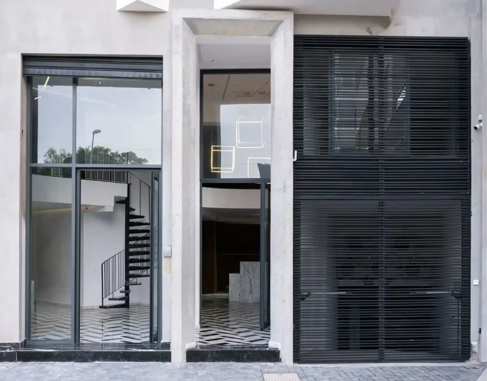 The architecture of the building reflects a modern urban aesthetic characterized by clean lines and geometric forms. Glass surfaces and carefully selected exterior materials create a distinctive visual identity.