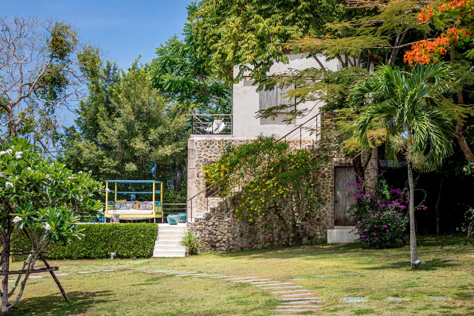 The House of Koh Koon is designed as a large estate where the main residence and guest accommodations are spread across the property. This layout allows groups of guests or family members to enjoy both privacy and shared social areas.