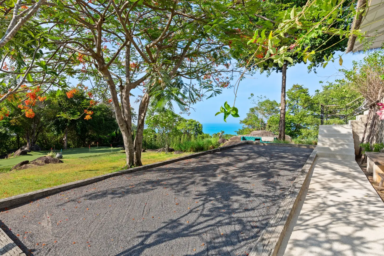 Outdoor living is one of the defining features of this luxury villa for sale in Koh Samui. The estate includes large terraces, landscaped gardens, and multiple areas designed for relaxation and entertainment.