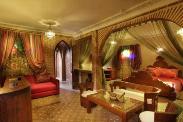 The three Junior Suites offer functional layouts with traditional Moroccan design elements. One of the suites includes a kitchenette, adding flexibility for longer stays.